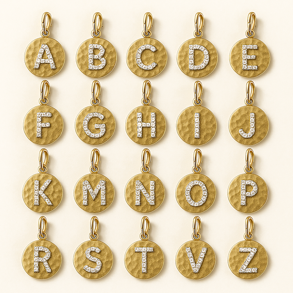 Gold Diamond Initial Medallion Coin Pendant