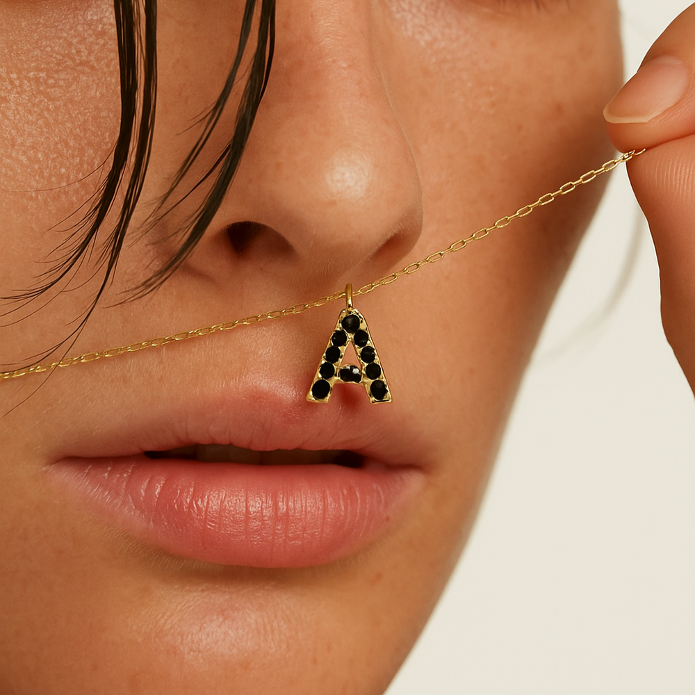 Gold Black Initial Pendant