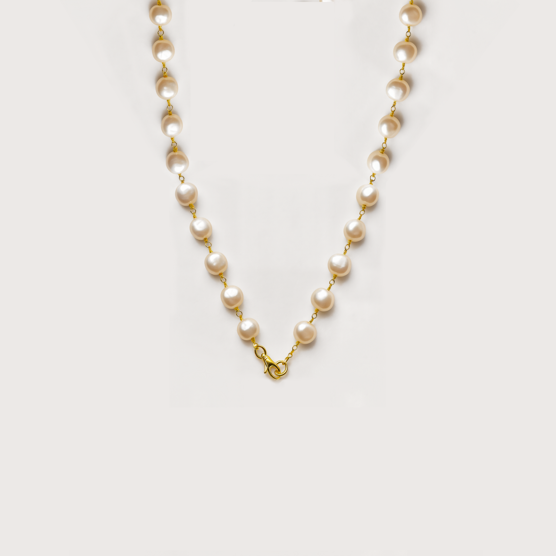 Materials & Craftsmanship: Hand-strung 7–8 mm cultured freshwater pearls with radiant lustre, paired with an 18k gold plated chain and hair-safe rounded links. Each piece is hypoallergenic, anti-tarnish, and finished with care in small batches.