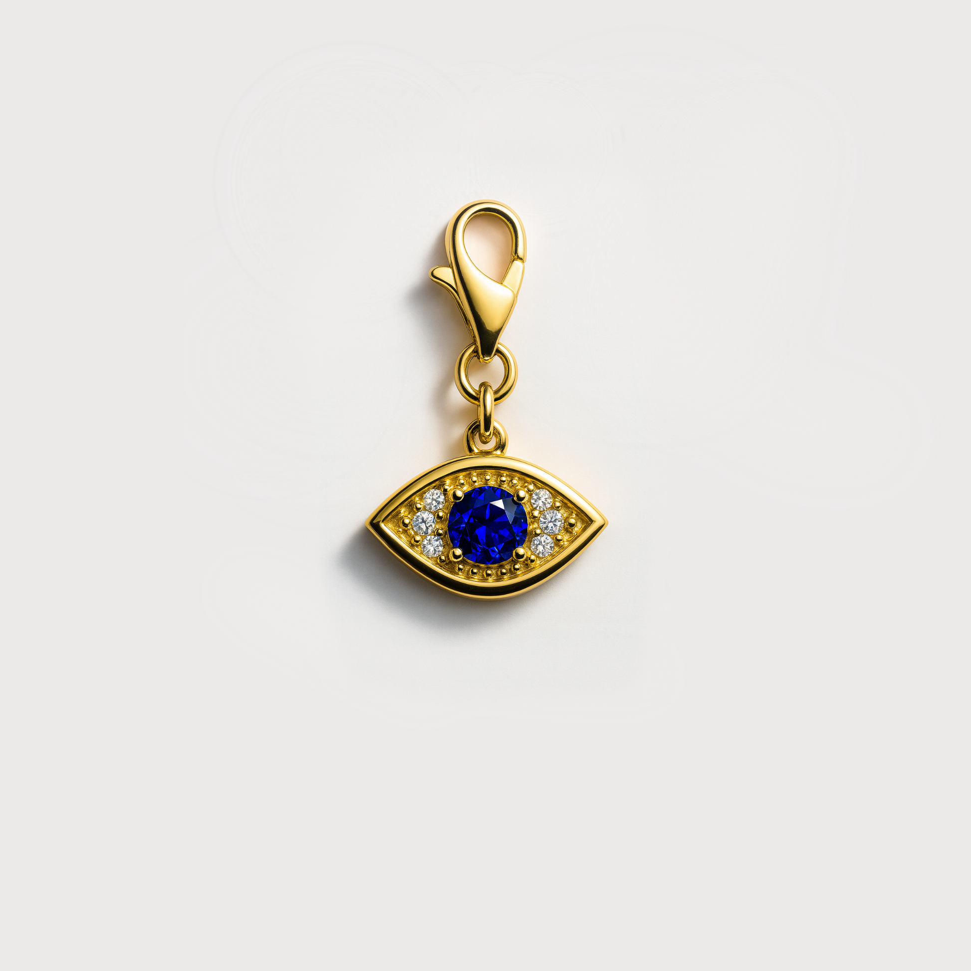 18ct gold vermeil páve blue evil eye charm. You can use the gold clasp attached to mix and match with our chains.
